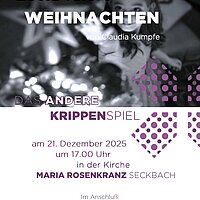 Das Krippenspiel für Erwachsene ist seit 15 Jahren Bestandteil des Seckbacher Adventskalenders. Entstanden ist dieses besondere Event aus dem Engagement einiger Kindergarteneltern, die in Eigenregie die Krippenspiele realisierten. Inzwischen spielen die Eltern der nächsten Generation mit den ehemaligen Kindern unserer Kita.