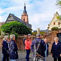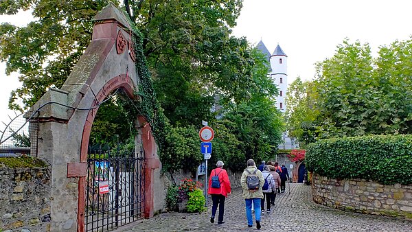 Beginnend im Hof der kurfürstlichen Burg aus dem 13. Jahrhundert zeigte uns die bewanderte Stadtführerin so manches Schmankerl ihrer Stadt. Die Gruppe erfuhr dabei, dass Eltville die älteste Stadt im Rheingau ist.