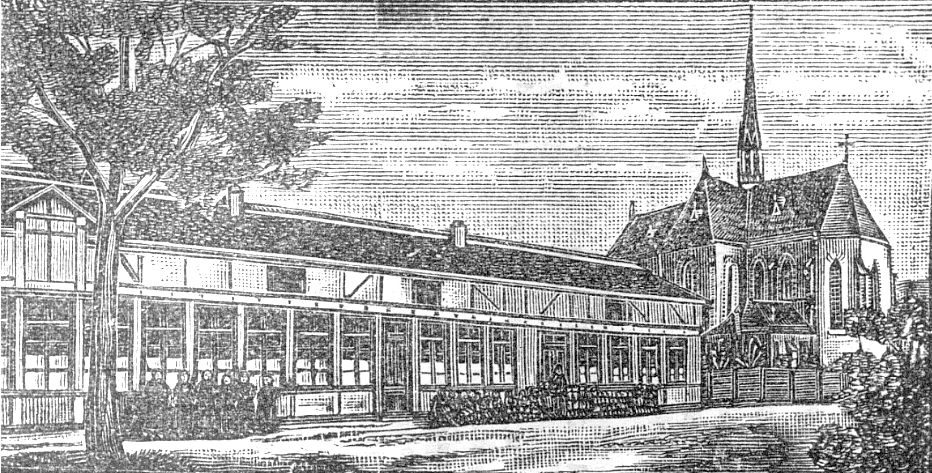 Bereits 1874, noch bevor die kath. Kirche gebaut wurde, konnte auf einem Bauplatz in der Waldstraße (heute Eichwaldstraße 40), der der Gemeinde von Frau May geschenkt wurde, mit dem Bau eines Schwesternhauses begonnen werden, in das die Schwestern schon im Juni 1875 einziehen konnten. Noch war nicht alles fertig eingerichtet und so dauerte es bis zum 18.08.1877 bis die kirchliche Einweihung als Klösterchen durch Pfarrer Rody erfolgen konnte.