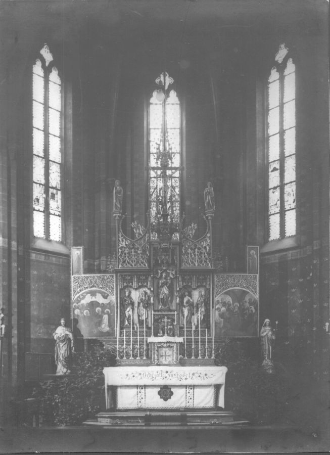 25.10.1931:   Letzter Gottesdienst in der 1876/77 errichteten alten Josefskirche, denn die Bauarbeiten zur Erweiterung der Josefskirche erfordern den Teilabriss der der Berger Straße zugewandten Seitenwand der alten Josefskirche. Abgebaut wurde auch die Orgelempore, da das hintere Kirchenschiff ab dem Querschiff zum neuen Chor der Josefskirche umgestaltet wurde.