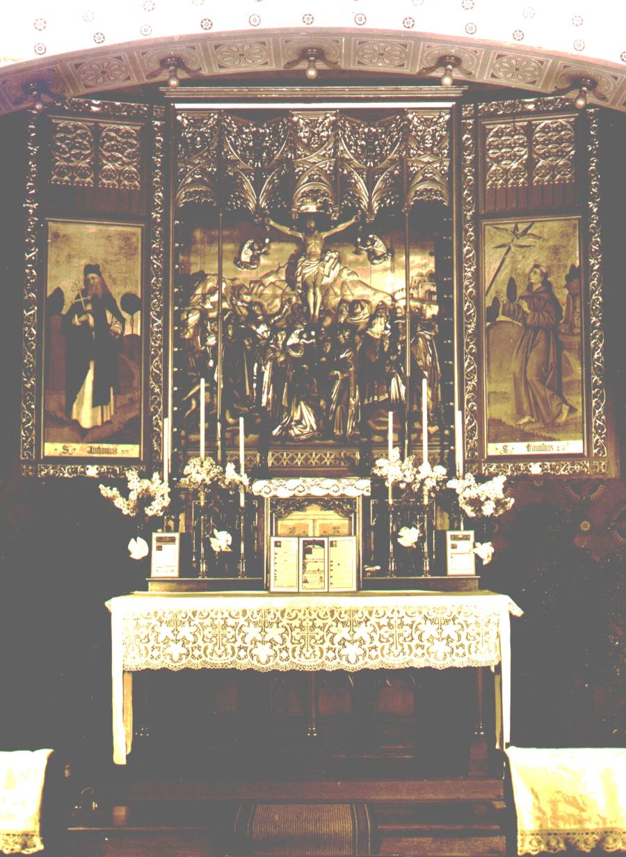 23.09.1877:   Die Bornheimer Missionskirche wird benediziert durch den Frankfurter Stadtpfarrer Ernst Franz August Münzenberger, der der Gemeinde auch den wertvollen Hauptalter geschenkt hatte. Der Bornheimer Pfarrer Dr. Heinrich Rody konnte diesen Tag nicht mit seiner Gemeinde feiern. Eine kulturkämpferische Obrikeit hatte den aufrechten Kirchenmann für drei Strafmonate im Kloster Eberbach, das als Gefängnis in dieser Zeit diente, festgesetzt. Nach seiner Rückkehr, so berichtet die Chronik, predigt er als erstes über das Thema: "Für die Wahrheit schreibe ich, für die Wahrheit leide ich, für die Wahrheit stehe ich".