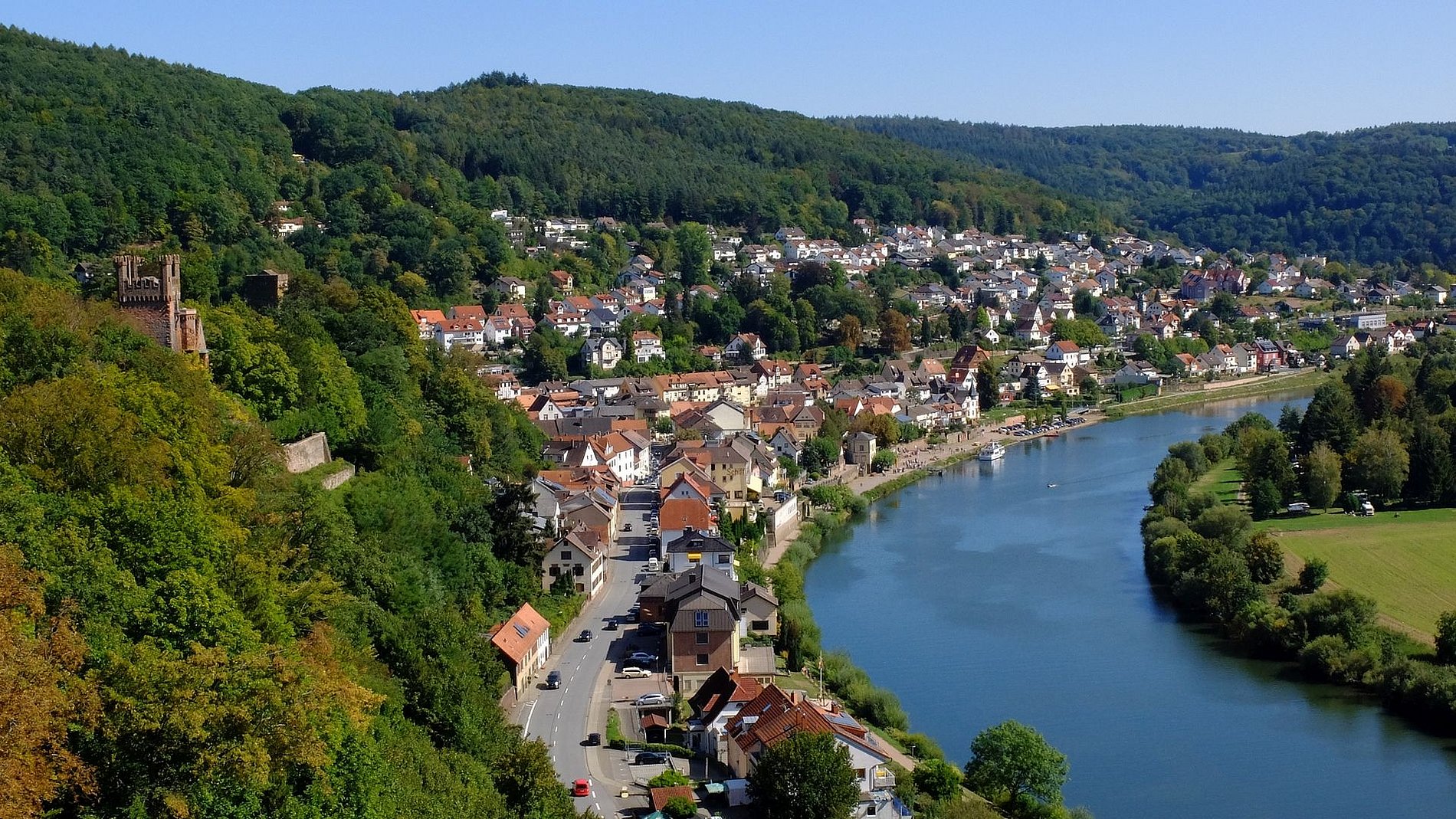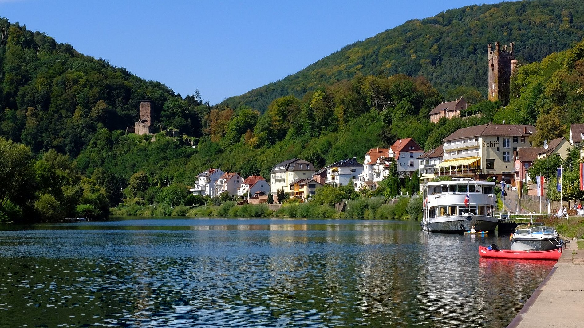 Dort war die Gruppe im Hotel „Zum weißen Lamm“ untergebracht. Von Kortelshütte aus wurde am Samstagvormittag zunächst das äußerst reizvolle Städtchen Hirschhorn am Neckar besichtigt. Der Stadtführer brachte der Gruppe zunächst die Besonderheiten der Stadt näher bevor es zur Karmeliter-Klosterkirche Mariä Verkündigung ging. Den Abschluss bildete die Burg Hirschhorn. Der Nachmittag war Neckarsteinach mit seinen vier Burgen gewidmet. Dem sonntäglichen Kirchgang in Eberbach am Neckar ging ein Bummel dort die dortige Altstadt voraus. Bevor es wieder Richtung Heimat ging, stand noch der Besuch des Katzenbuckels auf dem Programm. Der Katzenbuckel ist der höchste Berg des gesamten Odenwaldes. Den Abschluss bildete ein gemütliches und schmackhaftes Mittagessen in der Brauergaststätte einer bekannten Odenwälder Brauerei.