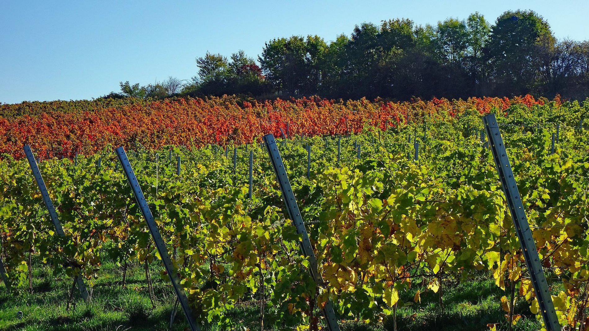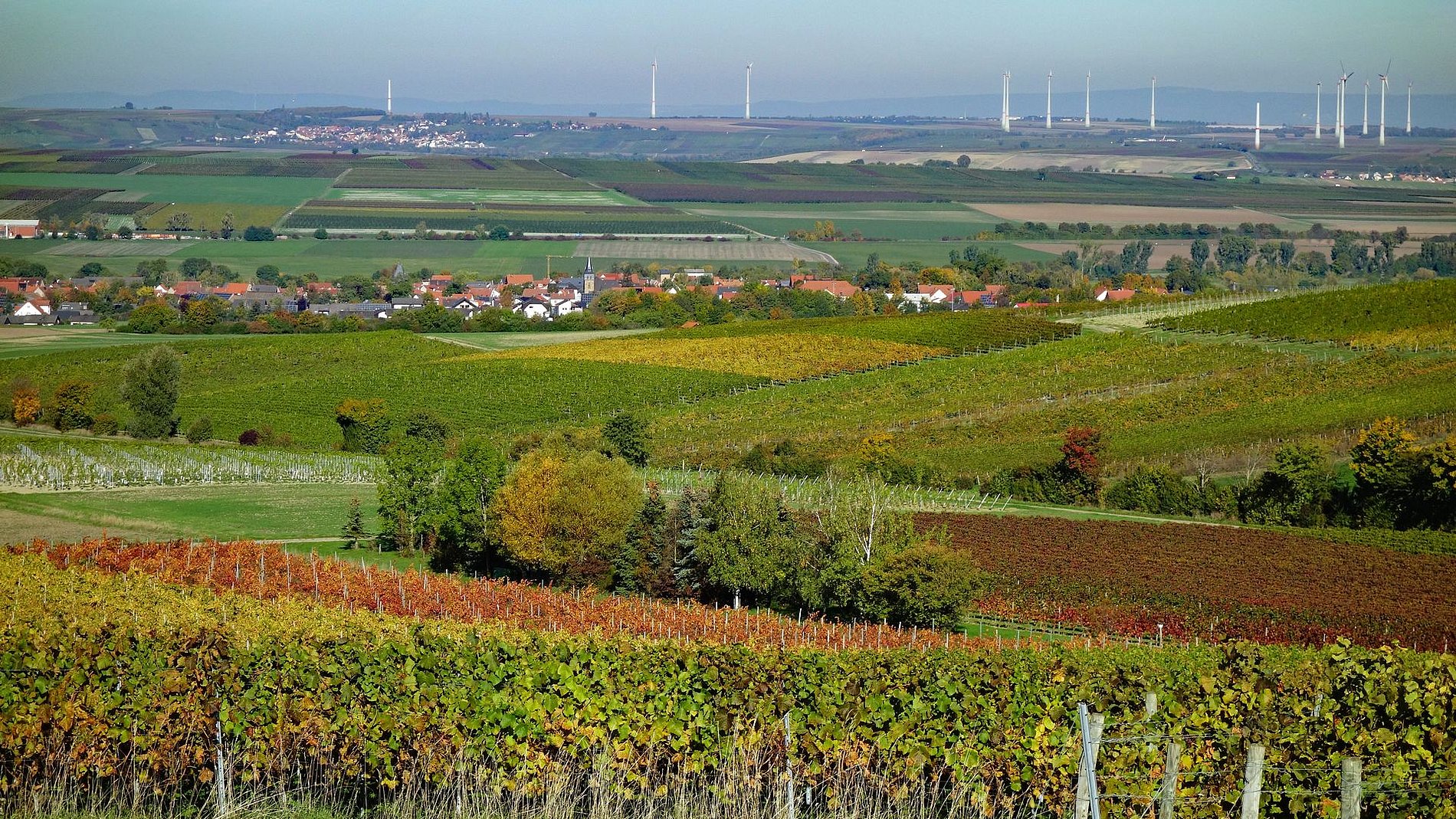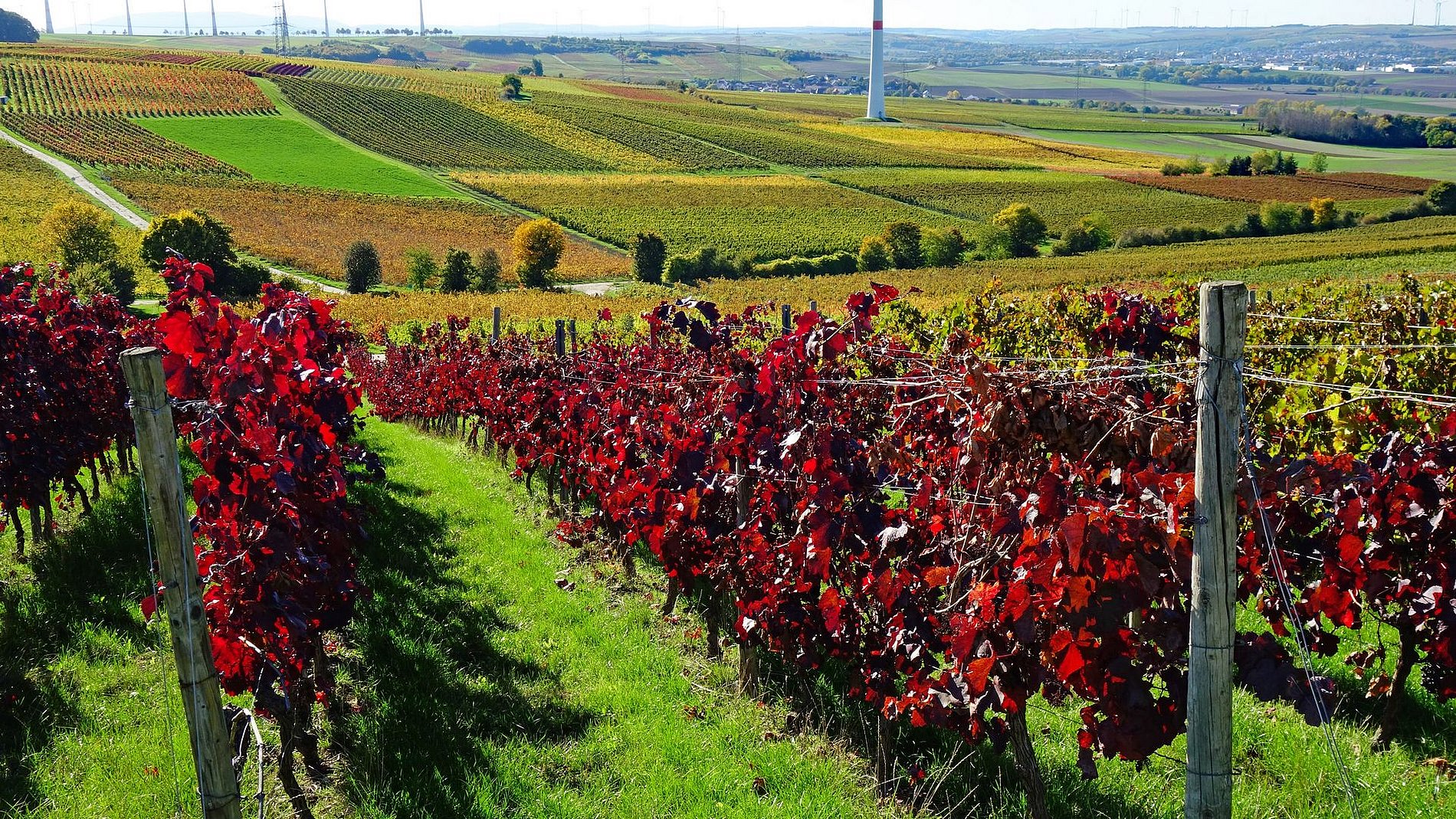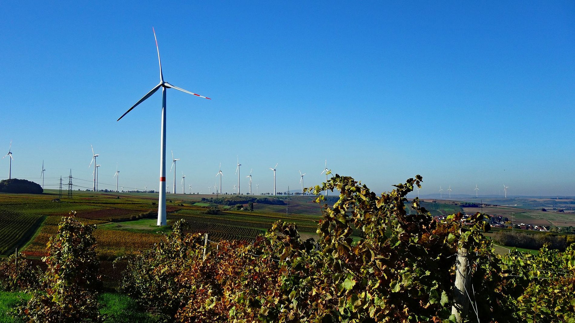 Im Land der 1000 Hügel, Rebzeilen, Windräder