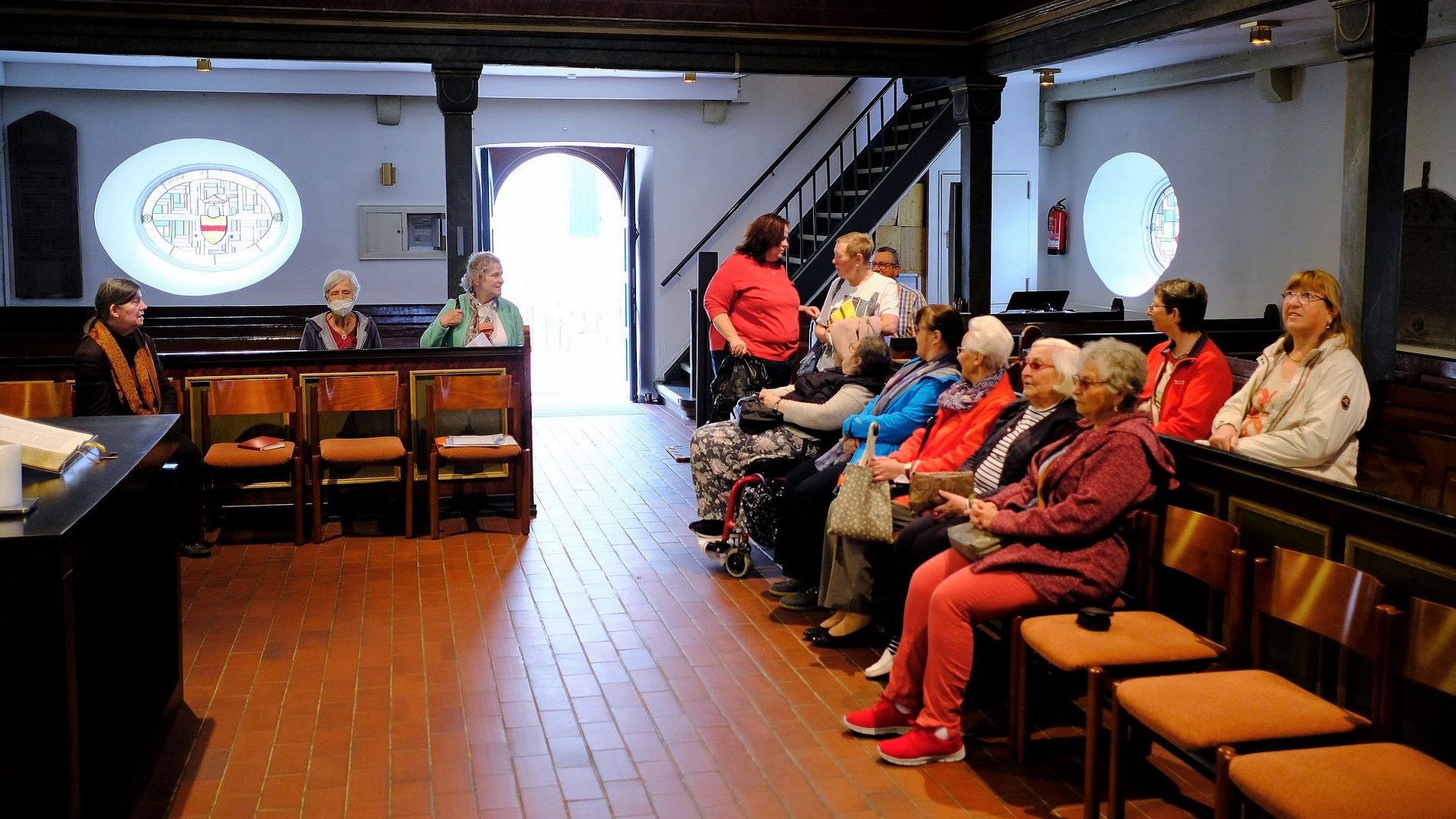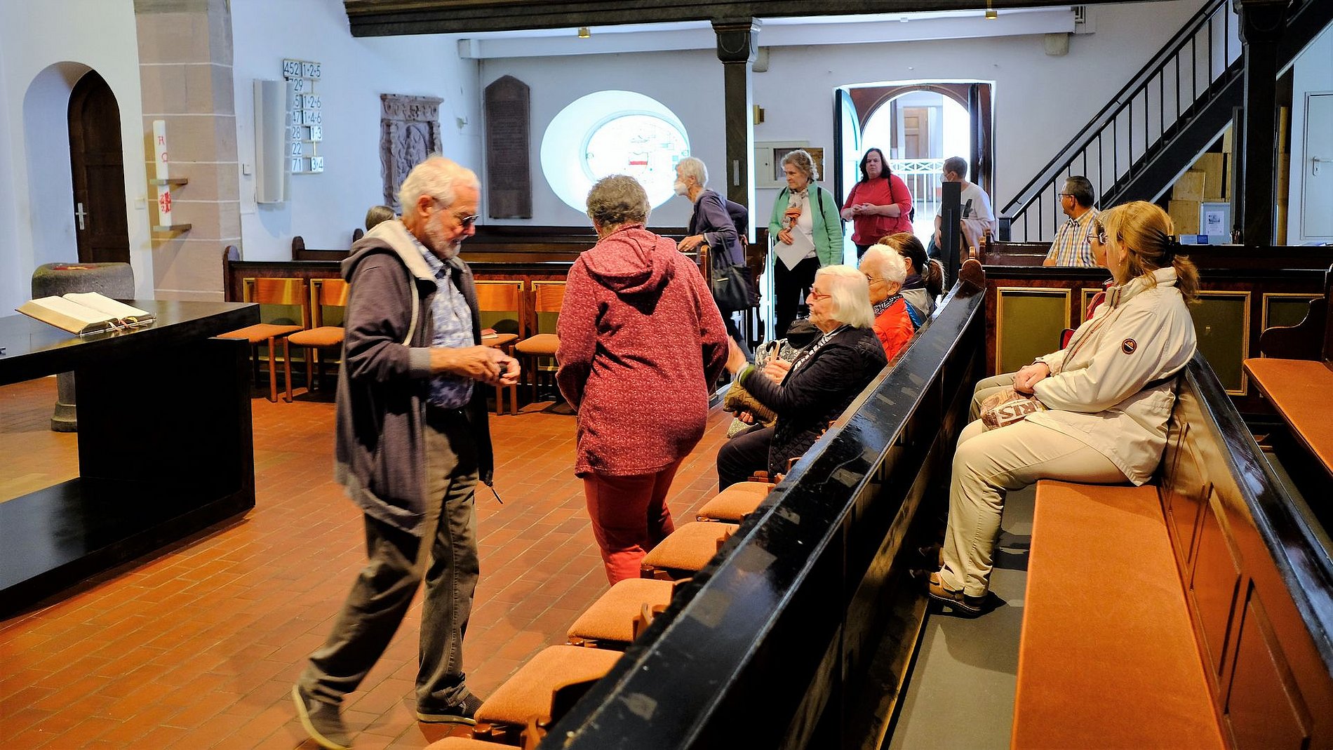 Der Ausflug von „Kirche und Kunst“ am 28. Mai hätte gut unter dem Motto „Warum in die Ferne schweifen, wenn das Gute liegt so nahe?“ stehen können. Denn die Kunstliebhaber aus dem Frankfurter Osten zog es in den Nachbarstadtteil, nach Preungesheim. Frau Anneliese Gad vom Kirchenvorstand der Kreuzgemeinde führte die Gruppe eindrucksvoll durch ihre Kirche.