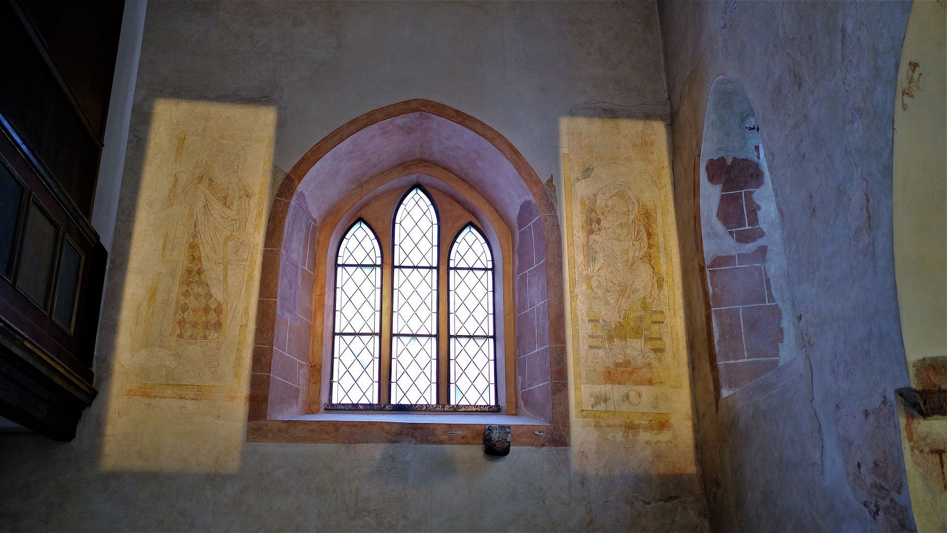 Bei Renovierungsarbeiten im Jahre 1997 bzw. bei archäologischen Grabungen in den Jahren 1998 bis 2002 kamen nicht geahnte Überraschungen zu Vorschein. So fand man zwei gegen Ende des 13. Jahrhunderts entstandene Wandbilder. Eines der Bilder zeigt einen Ritterheilgen – vermutlich den Heiligen Georg – das andere Bild eine Madonna mit Kind. Beide Bilder sind im Übergang des spätromanischen Stils zum frühgotischen Stil geschaffen worden. Im Zusammenhang mit den Arbeiten wurde auch ein gotisches Dreibahnfenster entdeckt. Neben weiteren mittelalterlichen Gemälderesten sind die im Stil der Renaissance ausgeführte Kanzel und im Altarbereich zwei Buntglasfenster der Künstlerin Lina von Schauroth hervorzuheben. Den Abschluss dieser besonderen Kirchenführung bildete ein Besuch des im alten Pfarrhaus untergebrachten kleinen Museums, das neben sakralen Exponaten auch Gegenstände aus der Preungesheimer Ortsgeschichte zeigt. Für die Leute von „Kirche und Kunst“ war es ein gelungener Samstagnachmittag, der in einer nahegelegenen Pizzeria seinen geselligen Abschluss fand.