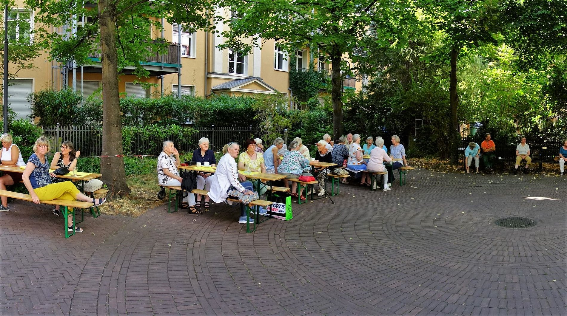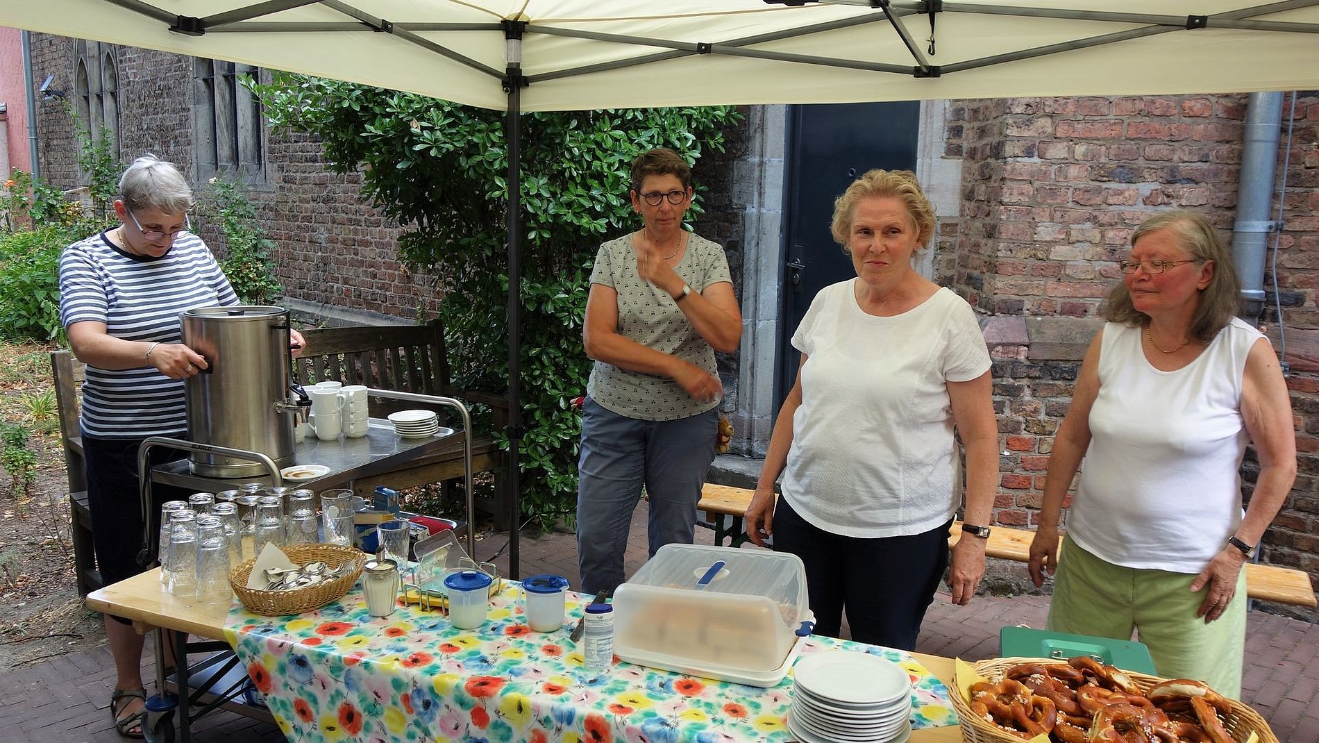 Die Gäste ließen es sich auf dem Kirchplatz von Sankt Josef unter den schattenspendenden Linden bei Kaffee und Streuselkuchen gutgehen.