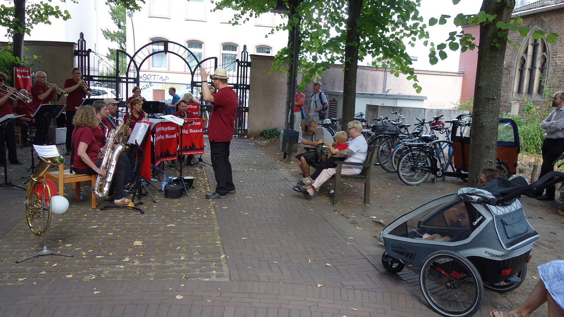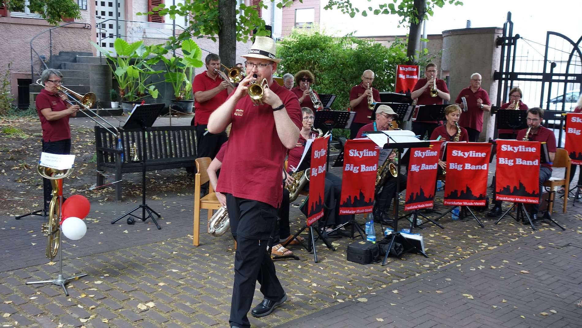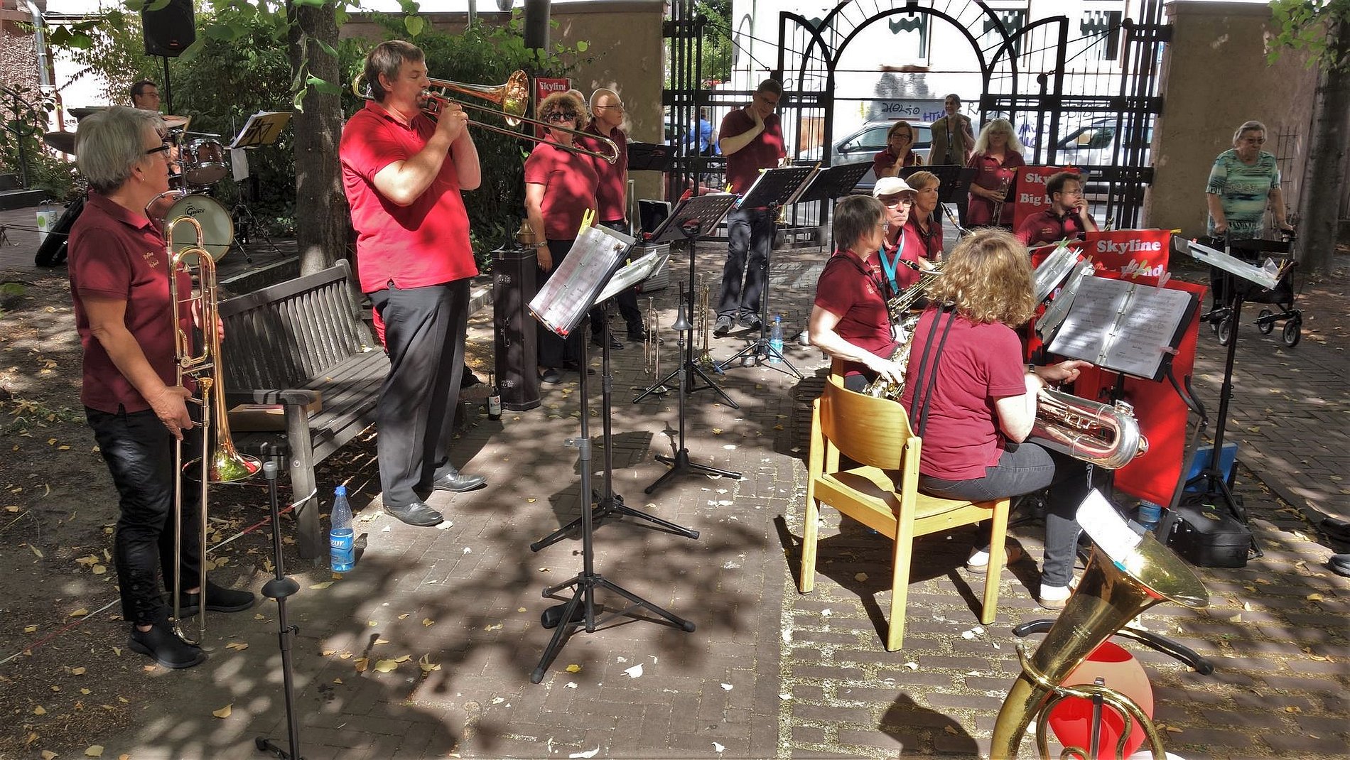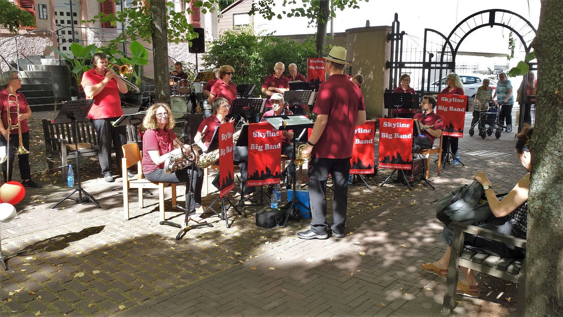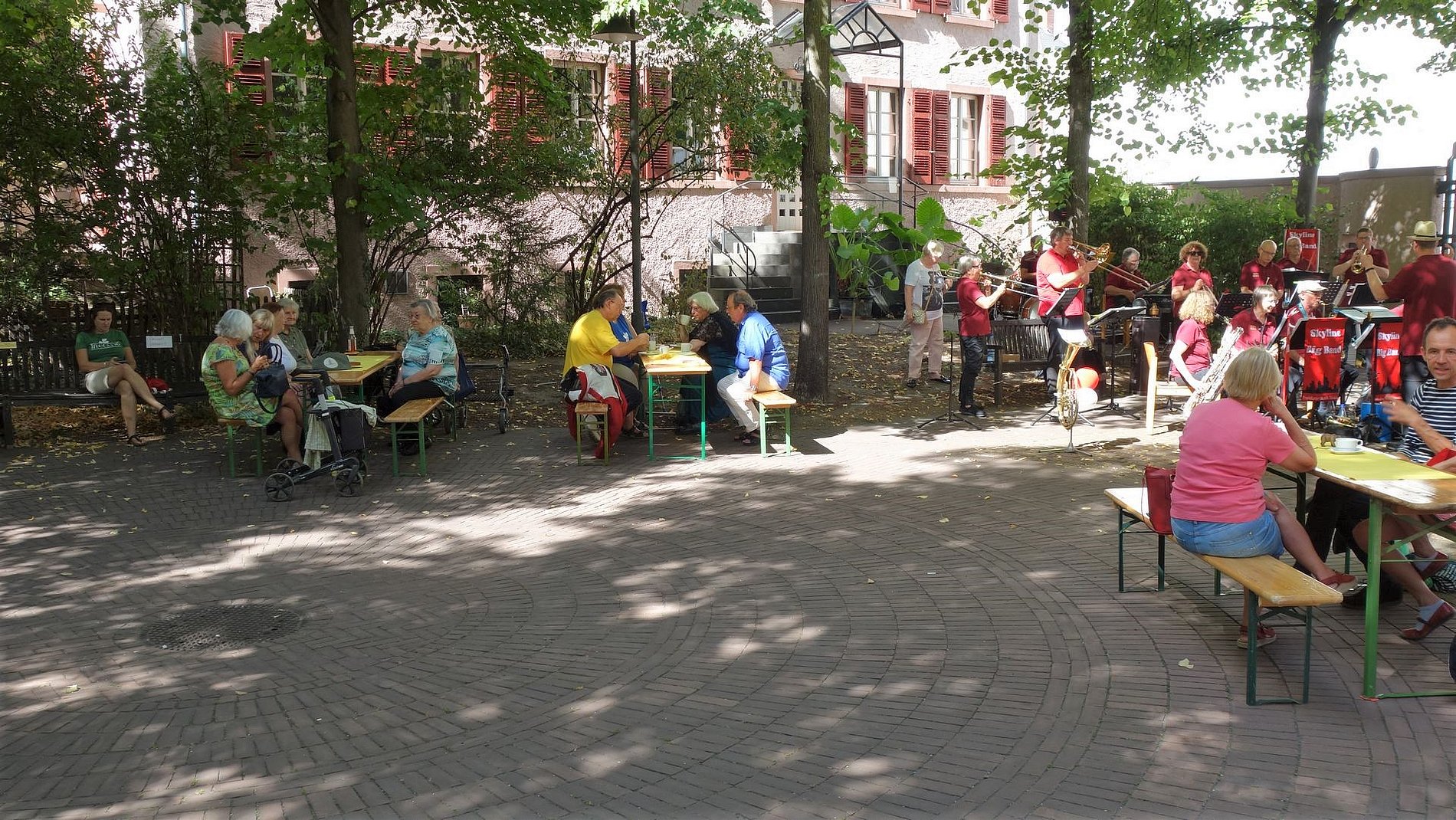 Am 20. August 2022 hatten sich mehr Gäste als sonst eingefunden. Schließlich hatte sich die Skyline Bigband angekündigt. Mit ihrer beschwingenden Musik sorgte die Skyline Bigband sofort dafür, dass Kaffee und Kuchen besonders gut schmeckten – oder ein Gläschen vom Josefswein.