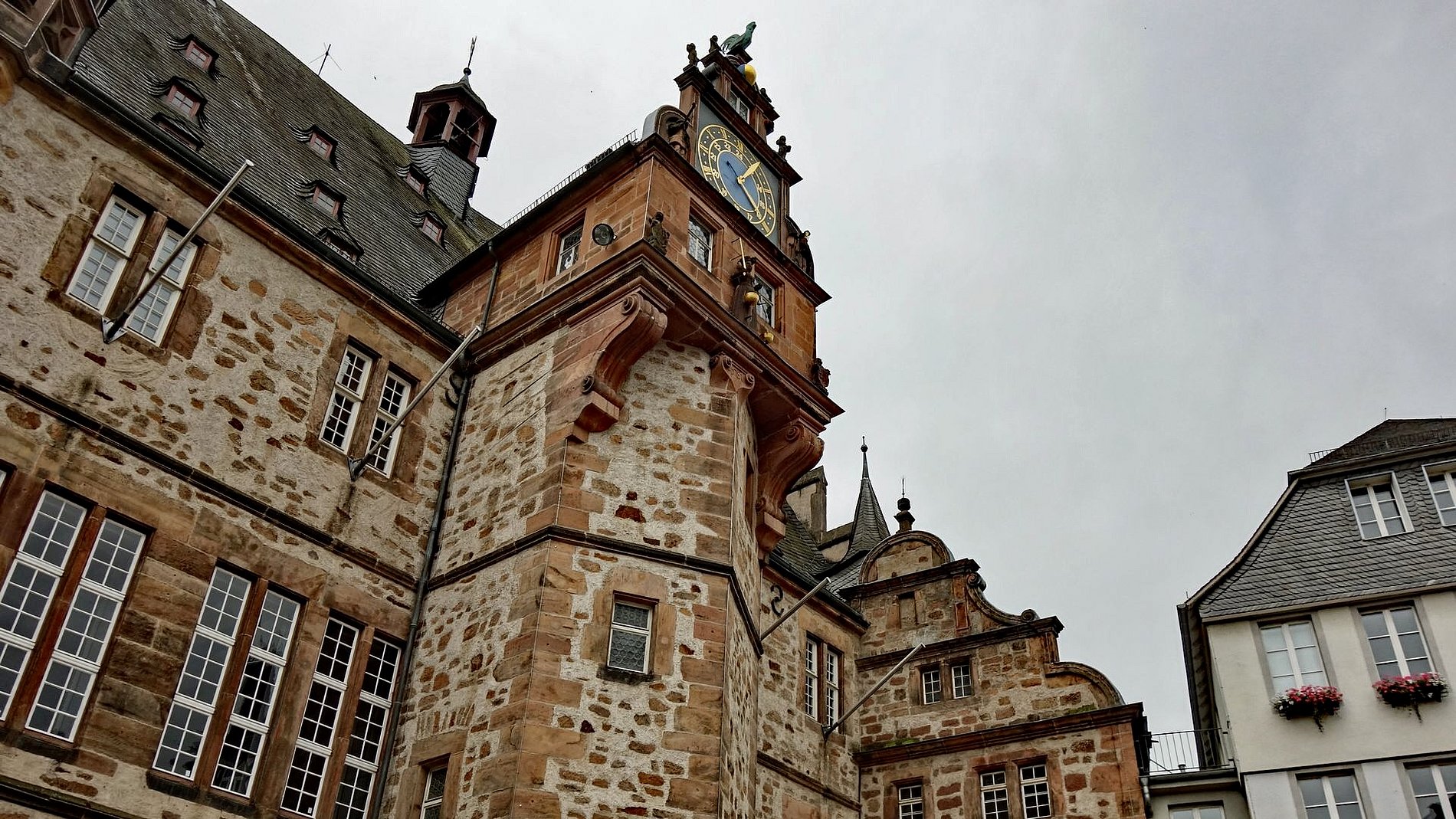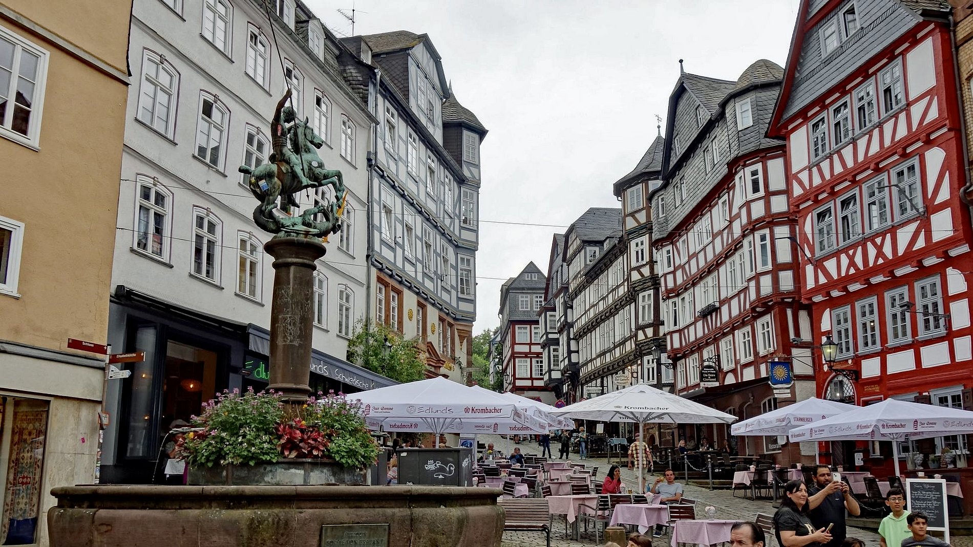 Ich glaube, es sind mehr Treppen auf den Straßen als in den Häusern. Am 27. Juli 2024 wollten sich die Leute von „Kirche und Kunst“ Marburg ansehen. Schon die Brüder Grimm beeindruckte die mittelalterliche Aura Marburgs, die Stadt mit ihren alten Fachwerkhäusern, schmalen Gassen, 40 steilen Treppen, dem heimeligen Marktplatz und dem mächtigen Landgrafenschloss.