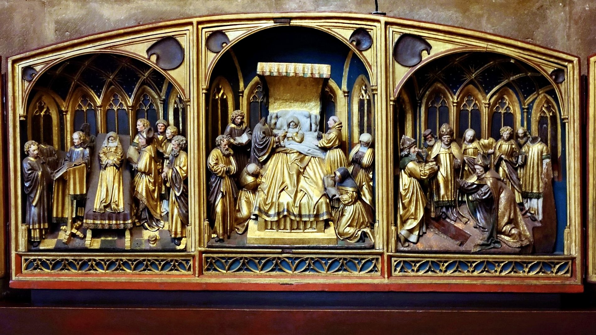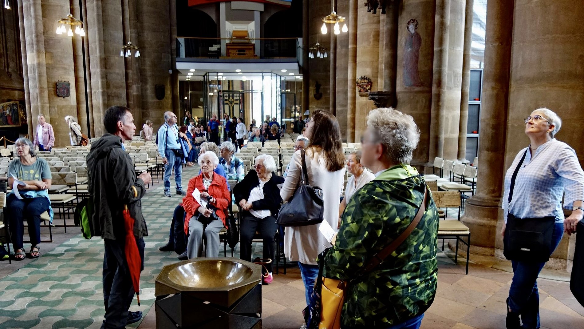Der Aufenthalt in Marburg begann jedoch an und in der Elisabethkirche, die über dem Grab der Hl. Elisabeth von Thüringen errichtet wurde. Erbaut nach dem Vorbild französischer Kathedralen ist sie früheste gotische Hallenkirche in Deutschland. Auch der Schrein, in dem Elisabeth einst ruhte, war Gegenstand der Führung durch das Gotteshaus. Nachdem sich die Gruppe unter Anleitung eines versierten Historikers die Elisabethkirche innen wie außen angesehen hatte, ging es mit dem Stadtführer in die Altstadt, wo das eine oder andere kunstgeschichtliche Schmankerl überraschen konnte.
